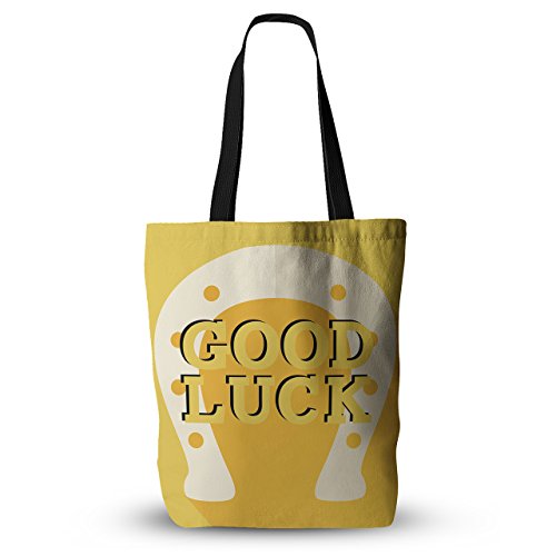 KESS InHouse Original "Lucky Horseshoe" Yellow Typography Everything Tote Bag, 18" x 18", Multicolor