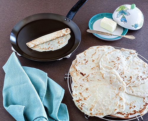 oxidation. The Paderno World Cuisine 9 1/2-inch crepe pan is constructed of high-quality, polished carbon steel and is cooktop-, oven- and broi-