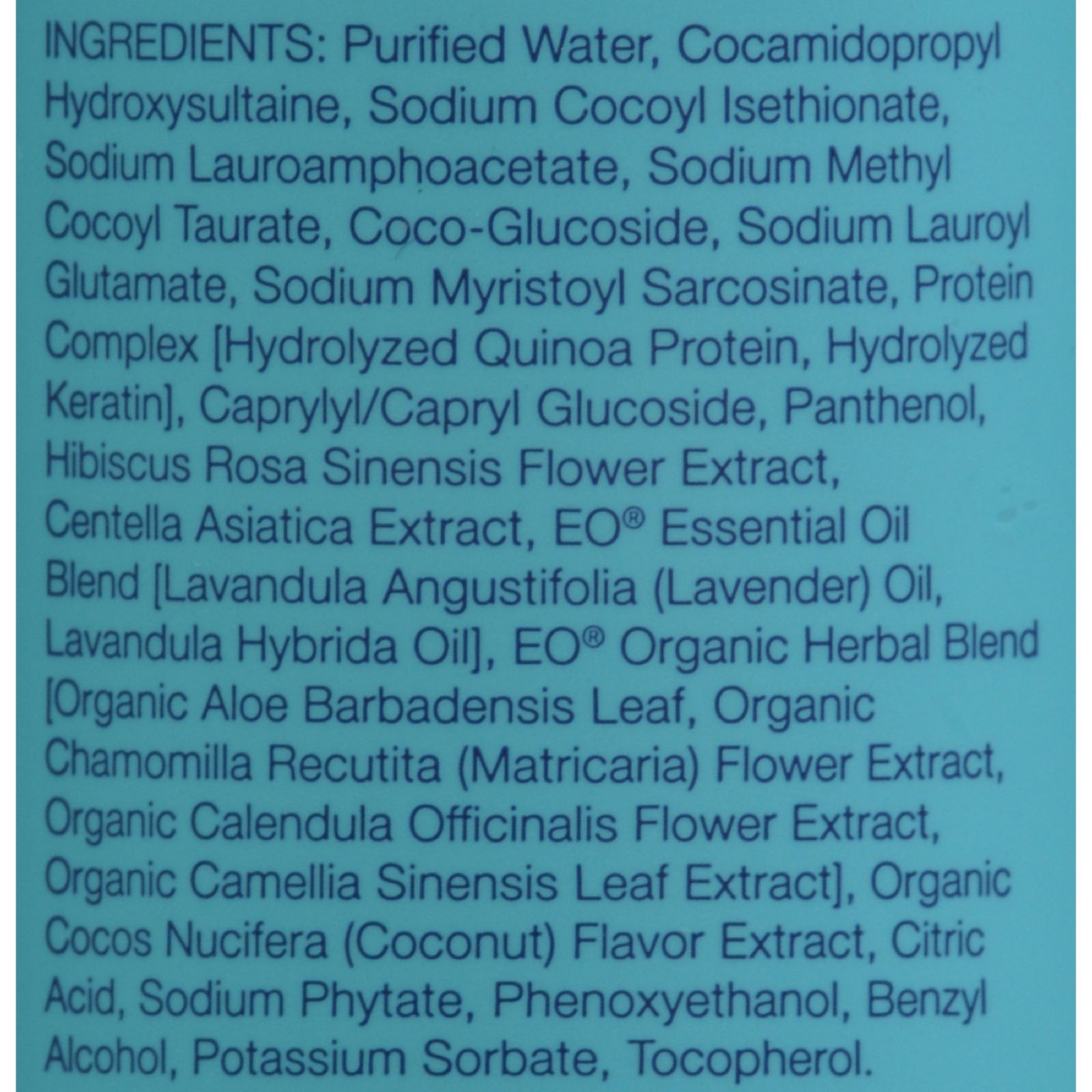| EO Essential Oil Products Keratin Shampoo Coconut and Hibiscus Description: Love Life. Live Clean Sulfate Free For Color Treated and Processed Hair Smooth and Strengthen / Keratin, Hibiscus Hydrate / Panthenol, Glycerin Fortify / Quinoa Protein Revitalize / Gotu Kola EO Sulfate Free Coconut and Hibiscus Keratin Shampoo is enriched with key beneficial ingredients to protect hair from the daily damage of heat styling, chemical processing and color treatments. Free of sulfates found in most hair care, the Keratin and Quinoa proteins bond with each individual strand, imparting a protective coating that lasts between washes to leave hair light, bouncy and silky soft. This unique formula gently cleanses and provides core strength for maximum elasticity and shine. Rich Hibiscus blends with fragrant Coconut to re-hydrate keratin fibers for maximum brilliance. Gotu Kola revitalizes hair to promote healthier, more vibrant locks. Keratin provides critical proteins to impart core radiance and strength. Quinoa Protein fortifies, conditions and supports hair health. Panthenol aids in moisture retention, increasing elasticity and thickening hair. Organic Calendula, Chamomile and White Tea botanicals harmonize and replenish Aloe Vera improves scalp health with powerful antioxidants. pH balanced and biodegradable. Free Of Synthetic fragrances, animal testing, parabens, polysorbate, disodium EDTA, sodium laureth/lauryl sulfate, gluten. Disclaimer These statements have not been evaluated by the FDA. These products are not intended to diagnose, treat, cure, or prevent any disease. Ingredients : Purified Water, Cocamidopropyl Hydroxysultaine, Sodium Cocoyl Isethionate and Sodium Lauroamphoacetate and Sodium Methyl Cocoyl Taurate, Coco-Glucoside, Sodium Lauroyl Glutamate, Sodium Myristoyl Sarcosinate, Protein Complex [Hydrolyzed Quinoa Protein, Hydrolyzed Keratin], Caprylyl/Capryl Glucoside, Panthenol, Hibiscus (Rosa Sinensis) Extract, Gotu Kola (Centella Asiatica) Extract, EO Essential Oil Blend [Lavender (Lavandula Officinalis) Essential Oil, Lavandin (Lavandula Hybrida) Essential Oil], EO Organic Herbal Blend [Organic Aloe Vera (Aloe Barbadensis) Leaf, Organic Chamomile (Matricaria Recutita) Flower Extract, Organic Calendula (Calendula Officinalis) Flower Extract, and Organic White Tea (Camelia Sinensis) Leaf Extract], Organic Coconut Flavor Extract, Citric Acid, Sodium Phytate, Phenoxyethanol, Benzyl Alcohol, Potassium Sorbate Size : 8.4 FZ Pack of : 1 Product Selling Unit : each |