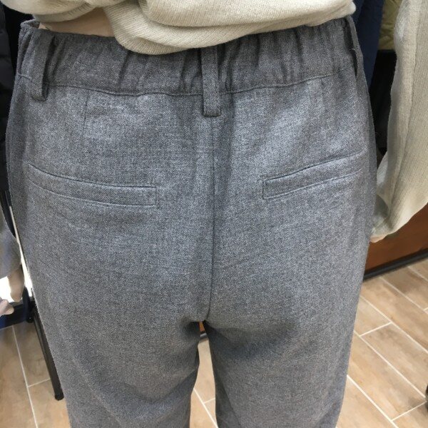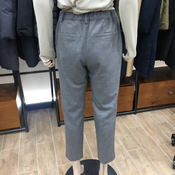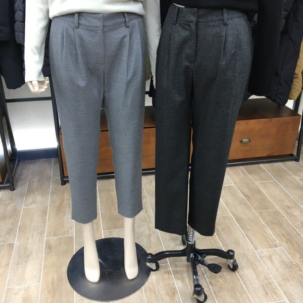 보이쉬한 느낌이 물씬 풍기는 슬랙스입니다. 발목이 살짝 보이는 9부기장으로 앞부분에 주름이 잡아져 있어 전체적으로 살짝 여유로운 통의 일자핏이 체형커버도 해주어 편안한 팬츠입니다. 가을에서 초겨울까지 입기 좋은 모직 팬츠로 너무 두껍지 않게 디자인 되었고 골반위를 안정감 있게 덮어주는 밑위길이 여유가 좀 있는 제품이라 다리라인도 정말 길어보이는 핏이랍니다! 허리 뒷부분에는 신축성 좋은 밴딩을 넣어 편안한 착용감까지 완벽한 슬랙스이니 하나 소장해 보세요. 총장길이는 55사이즈 기준으로 89cm 입니다.