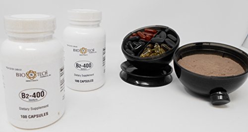 Vitamin B2 (Riboflavin) is a nutrient that is essential for energy production and the metabolism of carbohydrates, fats, and proteins. Riboflavin is found in small quantities (less than 1 mg) in a variety of foods, but some individuals may benefit from much higher doses. B2-400 is a unique formula that provides 400 mg of pure riboflavin per capsule. Research suggests that 400 mg of riboflavin per day may help certain individuals maintain mental clarity, healthy mood, and optimal productivity. Vista Ball supplement storage container Colors will vary.Feature