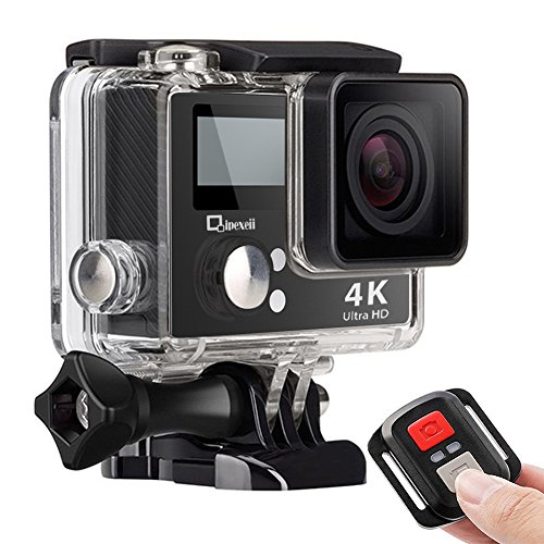 4K Wifi Sports Action Camera,Underwater Camcorder Qipexeii Double Screen Sony Sensor 16MP 100 Feet Waterproof 170° Wide Angle With 2.4G Remote Control,2 Pcs 1050mAh Rechargeable Batteries ( Black)