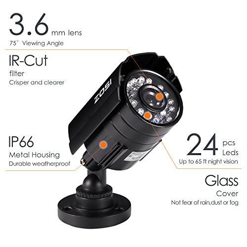 -. Title : ZOSI 4PK HD 800TVL 3.6mm lens 24 IR-LEDs CCTV Camera Home Security Day/Night Waterproof Camera