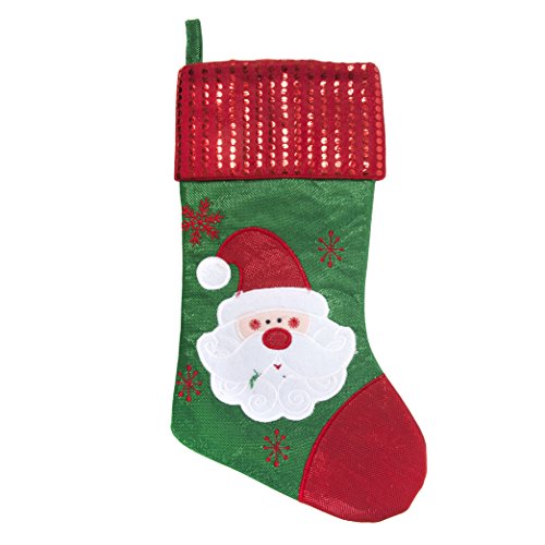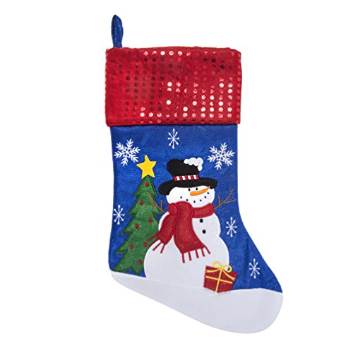 Set of 3 Christmas Stockings 18” Sequin Holiday Stocking Decorations, Red Green and Blue Colors Santa Claus Snowman & Tree Character Design Party Favor Accessories for Fireplace Decor by Gift Boutique