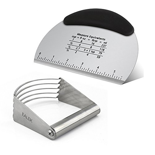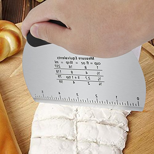 The Efficient Multipurpose Bread Dough Scraper Dough Scraper and Pastry Blender are a very simple tools but they are guaranteed to be one of the most important items for baking! This bread dough scraper can be used to scrape/cut dough, clean sticky food off your counter, and even help you mix the dough in a bowl. Basically an extension of your own arm! There's also a conversion chart above the inch side. This bread dough scraper has stainless steel blade and comfortable anti slip PP plus TPR handle. They're dishwasher safe, nonstick and non-toxic.