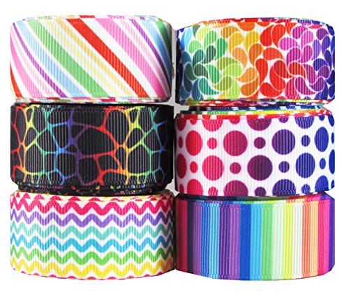 HipGirl Grosgrain Ribbon Collection (30yd (6x5yd) 7/8" Ribbon--Rainbow)