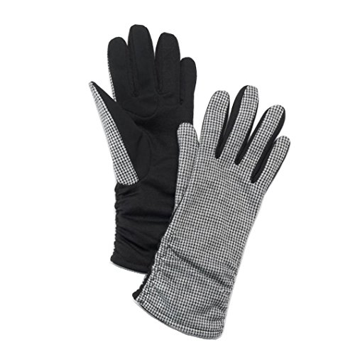 Product DescriptionPRODUCT FEATURES Mini houndstooth pattern Ruched details Touchscreen capability FABRIC CARE Fabric Hand wash0