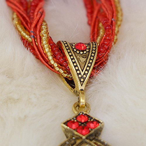 -. Title : A&C Fashion and Charm Red Star Bohemia Necklace for Women. Indian Weave Necklace for Girl.