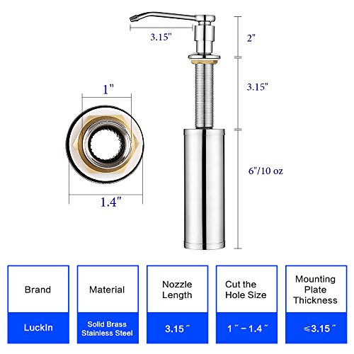 LuckIn Built-in Sink Soap Dispenser Kitchen Dish Dispenser Stainless Steel Liquid Soap Pump with 3.15 Inch Thread Tube and Large Capacity 10 oz for Thick Deck