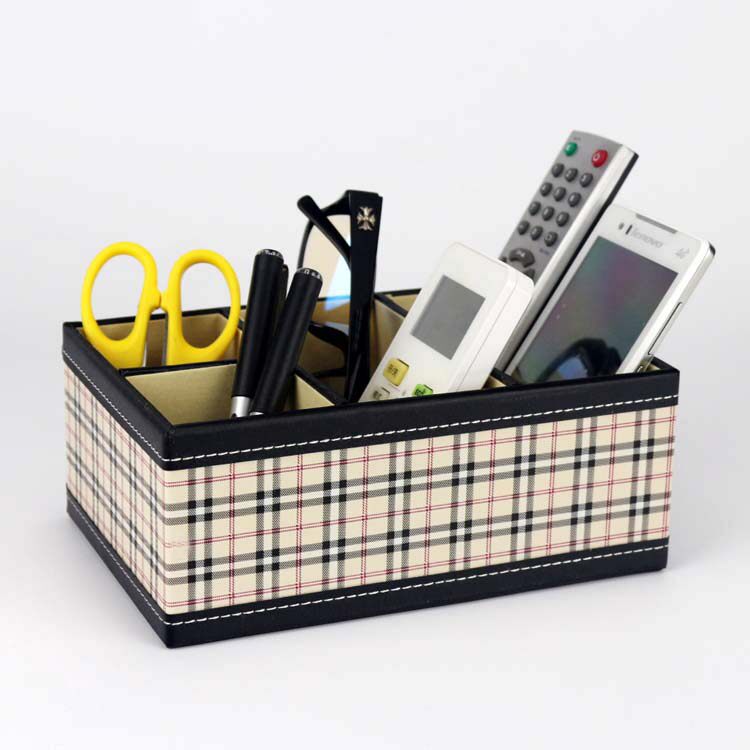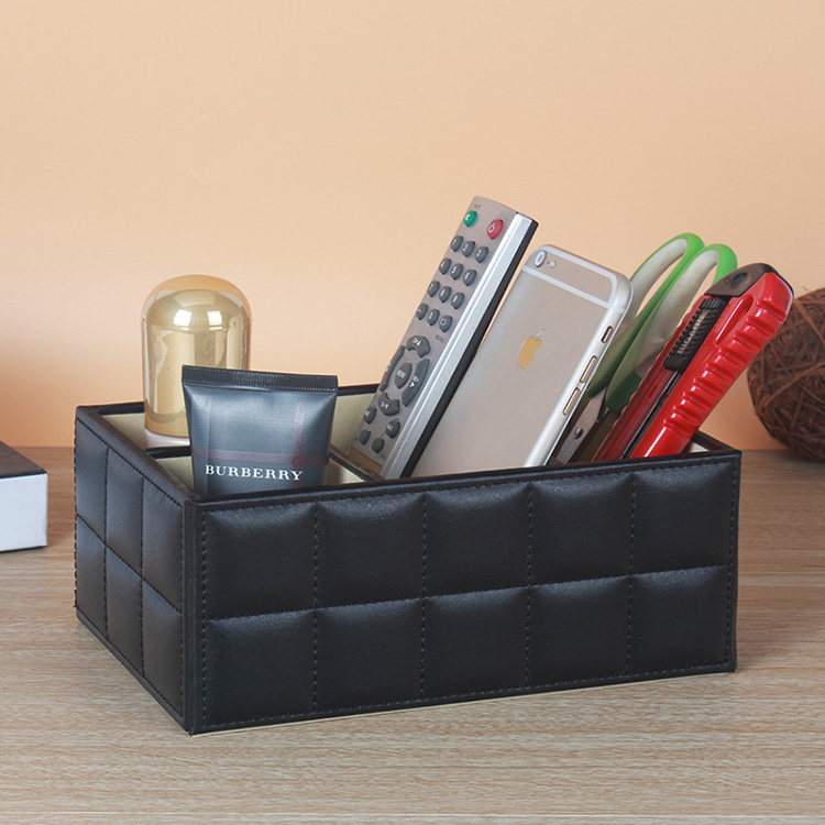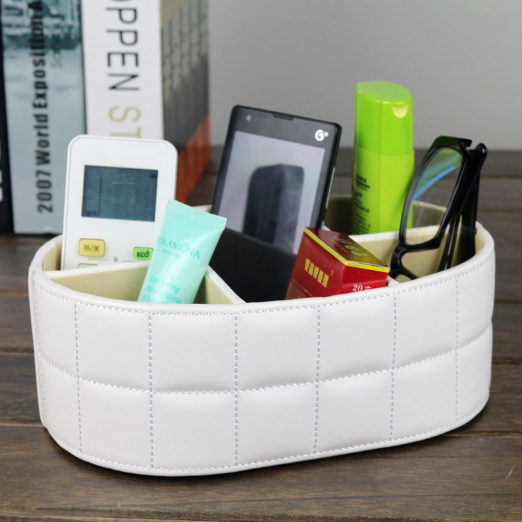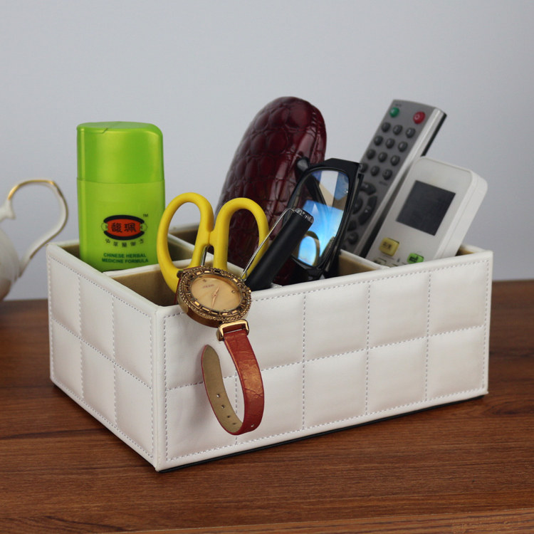 皮革茶几遥控器收纳盒 办公桌面文具化妆品盒 整理置物架韩国创意