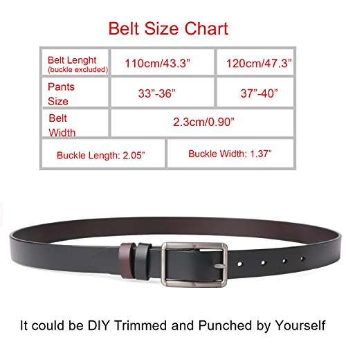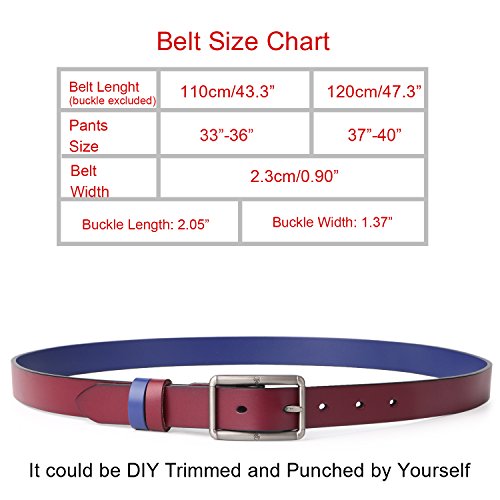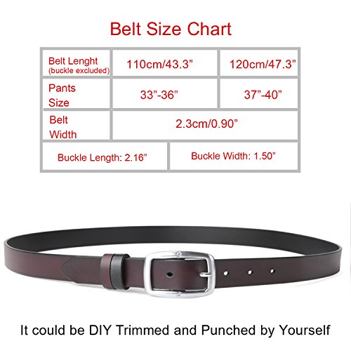★SIZE: 110cm/43.3"------------suit for pants size 33"-36", 120cm/47.3"-------------suit for pants size 37"-40" The belt width,buckle length,buckle width could be seen in the product picture. It could be trimmed and punched if the size not fit well for you.