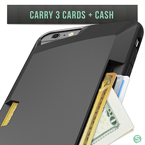 The Vault by Silk is an ultra slim wallet case for iPhone 6 Plus/6s Plus (5.5") that comfortably fits 3 cards plus cash. The durable soft-touch cover provides full-frame protection on all 4 corners to protect your phone from drops and dings. The soft-touch finish provides the perfect amount of grip and an ultra slim fit to slide in your pocket without sticking to the liner. Vault's sleek exterior gives way to a shock-absorbent reinforced ribbed substructure that disperses shocks around and away from your phone. Natural-Throw buttons provide a tactile response from each click to maintain an organic connection with the phone. Vault case marries the essentials of a wallet to the form factor of your iPhone.Feature