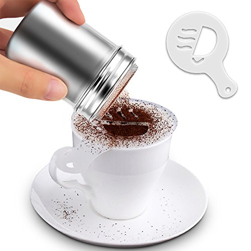 - FUNCTION: Used to sprinkle evenly the coffee with cocoa powder or cinnamon powder to enhance flavor, also a perfect tool for shaking salt, pepper and powdered sugar or decorating cakes and cupcakes.