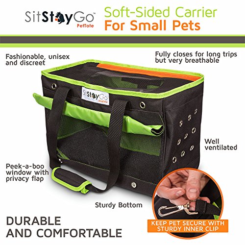 Studio : SitStayGo Publisher : SitStayGo Binding : Misc. Product Description Need an airline compliant pet travel carrier for your dog, cat or even your rabbit? Soft-sided pet carrier with collapsible bowl by SitStayGo is sturdy, durable, discreet and well ventilated, ensuring you have all you need for your pet when on the go, whether around town or on long-haul plane trips. This pet carrier?airline approved comes with a collapsible silicone travel bowl (FDA-approved 100% food grade silicone), an easy-access pouch to store it in and a side pocket to keep water bottles/treats/food. Dimensions are 16 IN x9 IN x11 IN with 12 IN handle drop; designed for your small pet in mind (<12 LB). SitStayGo auto and airline pet carriers provide an incomparable pet-carrying experience that focuses on comfort and safety for your beloved pet. Now you and your pet can achieve maximum comfort while traveling. This affordable pet carrier is well made and offers perfect ventilation and comfort for pets without compromising safety.? 0