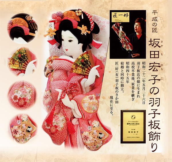 ・親御様、お子様、縁者様の健康と発展を願いながら職人が丁寧に仕上げた羽子板飾りが、