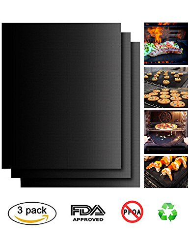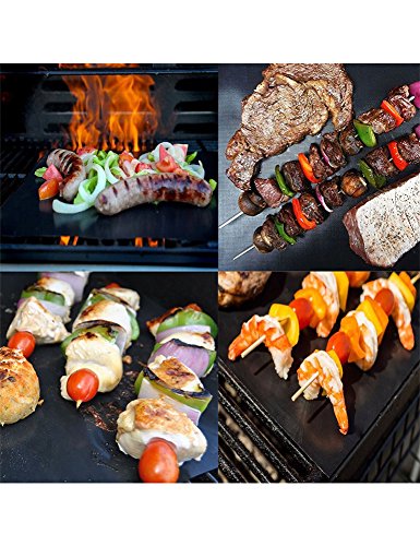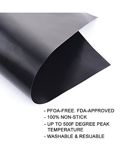 HIGH-QUALITY - These bbq grilling mat can heat resistant up to 500F DEGREE PEAK TEMPERATURE, and made from PFOA -Free materials and premium PTFE - Fiberglass coating with FDA-Approved.