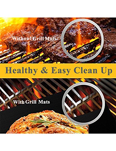 NON-STICK GRILL MAT - Fast and easy clean up and grill mats non-stick makes your BBQ easy. And some scattered foods won’t fall through the cracks,keeps your grill clean-up,and no worry to clean-up of your dirty grill. Best bbq accessories for gas, charcoal, electric and grill master.
