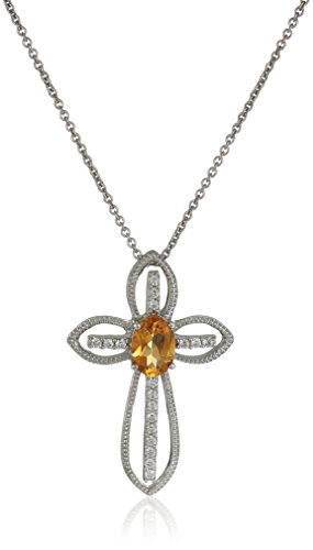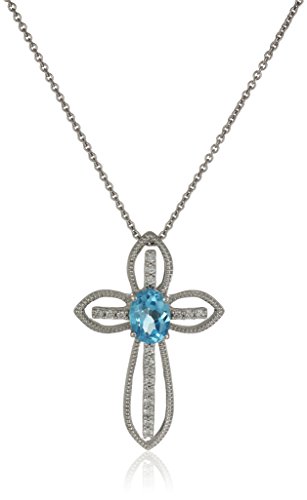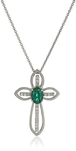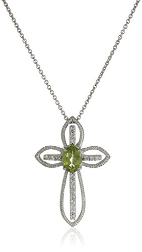-. Title : Sterling Silver Peridot Oval Shape Birth Stone Cross Pendant Necklace, 18"