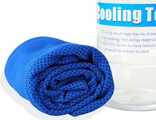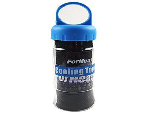-. Feature : Last Long - Advanced mesh cooling material provides hours of relief without re-wetting / Easy to Use & Chills Instantly - Just wet, shake and chill / Completely Reusable - Just re-wet and shake and it will be cool again! / Extra Long & Multipurpose Sports towel, 40" long by 12" wide. It is easy to tie if you will be moving around a lot. Works great as golf club head cover, cooling bandana or neck wrap. Perfect size for running, cycling, hiking, camping, football, basketball, swimming, gym and fitness. / Comes with an air-tight storage container with a lid that can be hooked onto a gym bag or purse with a carabineer. With the waterproof plastic case, it's easy to carry everywhere without making other stuff wet. The container might be broken when shipping, you can contact us to get a replacement.