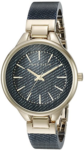 Anne Klein Women's AK/1408DKDM Gold-Tone and Dark Blue Denim Patterned Resin Bangle Watch