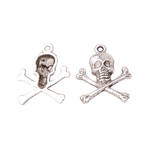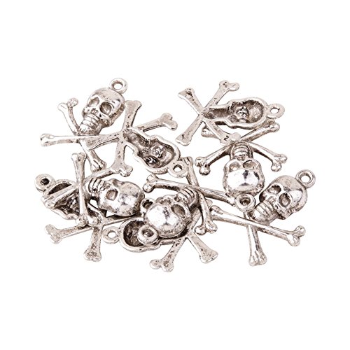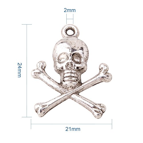 Pandahall 20pcs Antique Silver Tibetan Style Pirate Style Skull Pendant (24x21x4mm)