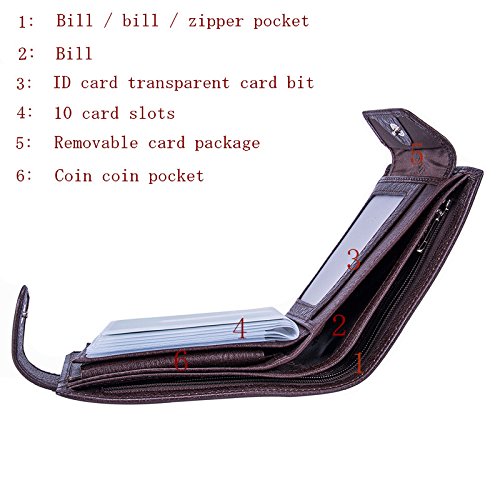 Binding : Apparel Product Description Beautiful premium quality The premium leather wallet ensures outstanding durability and longevity. The full grain leather wallet is a stand against time and will preserve you the memoirs of now. The full grain genuine leather imparts superb looks and the beautiful texture stands out from the rest. RFID protection to keep your credit card information safe Now-a-days, with chip embedded credit cards, you can just scan from a distance, even without taking it out of your wallet and make any payment. Imagine somebody scan it while you have it in your pocket. Not good right? These wallets come with complete RFID protection which makes your card invisible to these scanners. No tension whatsoever. Keeps on holding more and more Keep your paper money arranged in the dual compartments, so that you can pay in a hassle-free way, even without looking. It also has extra latch on card holder you can use while you add a couple of more cards. Why choose this wallet? 1:Its ultra-stylish, make a style statement out of your pocket. 2:Beautiful leather texture renders unmatched premium feel. 3: Extra latch on card holder so that you can add more. 4:Made with full grain leather, you can be assured of the highest grade. 5:Removable card package, let the purse become thin at any time! 6: This genuine men's leather wallet offers RFID protection for your credit cards. 0