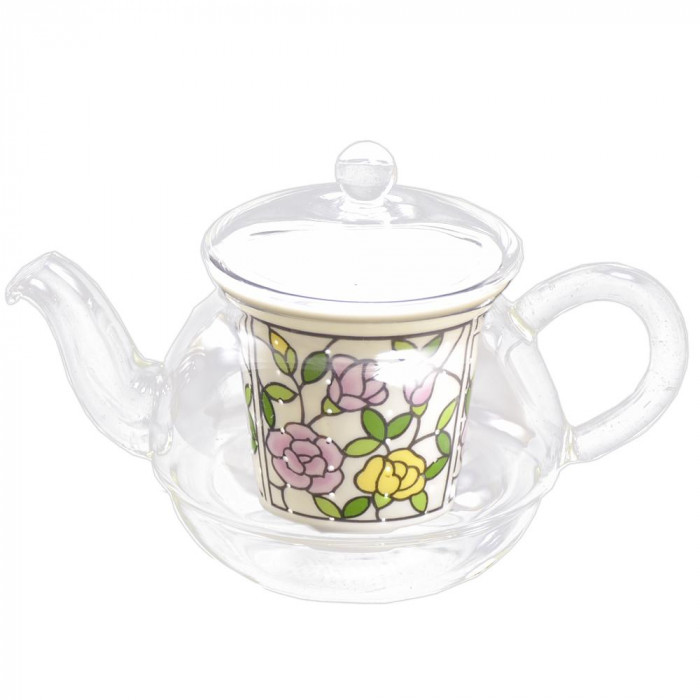 ガラスのティーポットに有田焼の茶こしがおしゃれ☆日本茶・紅茶・中国茶・ハーブティーなどいろんなお茶にご使用下さい♪ 製造国:ポット・蓋:中国、茶こし:日本 素材・材質:ポット・蓋:耐熱ガラス茶こし:磁器(有田焼) 商品サイズ:(約)径9.5×幅15×高10.5cm 仕様:容量:約300cc耐熱温度差:120度電子レンジ使用可食洗機使用可 セット内容:蓋付ポット×1、茶こし×1 ※サプライヤー直送品 ご注文後3~4営業日後の出荷となります【商品名】有田焼 セランドグラス おしゃれポット ビートロ薔薇 300cc KA-200