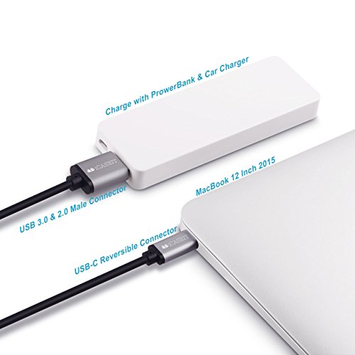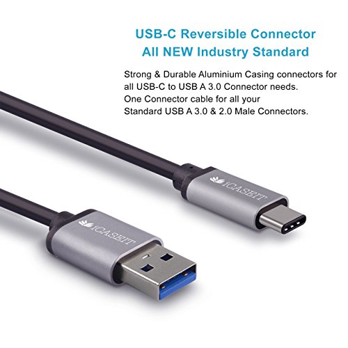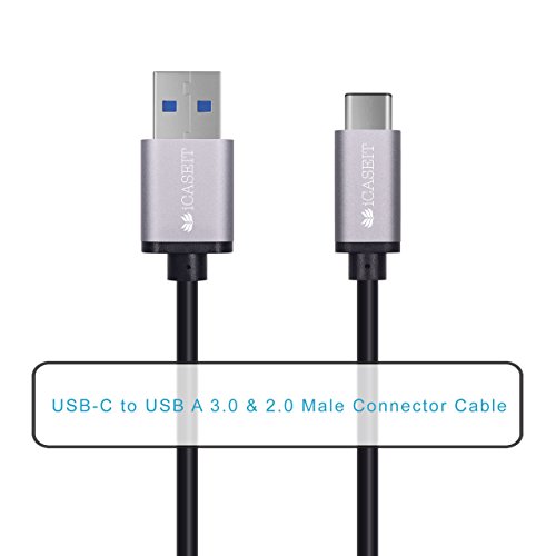 USB Type C Cable (1m) iCASEIT USB Type C (USB-C) to USB A USB 3.0 Male 56k ohm Data Charging Cord Reversible | MacBook 12, 13 & 15", Pixel, Nexus 5X 6P, Lumia 950/950XL, OnePlus 3 | GRAY 1m