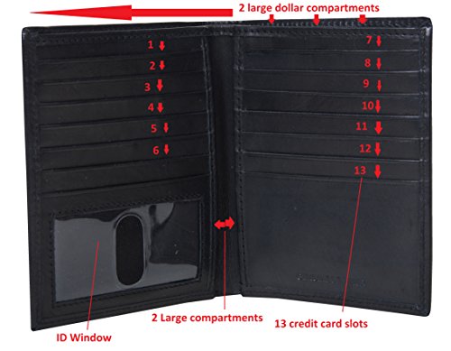 -. Binding : Apparel -. Brand : F&L CLASSIC -. ClothingSize : One size -. Color : Black -. Department : mens -. Feature : Genuine leather -Made in India, Great quality wallets will last a long time / Tested & Approved by Independent Lab Tests. Features a unique RFID Blocking technology, that protects your RFID Credit Cards, Debit Cards, ID Cards from electronic thief, Protection to Stop Thieves from Obtaining Personal or account information. / Classic style wallet -comes with 13 credit card slots - ID window-2 compartments that can be used for credit card or other stuff - 2 large dollar compartments / Great for a gift. to give to your special someone with RFID Blocking Men's Leather Wallet technology -. Model : RR-LEATHER-1-186-5C-bi-fold-BLK -. ProductGroup : Apparel -. ProductTypeName : ACCESSORY -. Size : One Size -. Title : RFID Blocking Mens Leather Bi-Fold Big Hipster Wallet, 13 credit card slots,