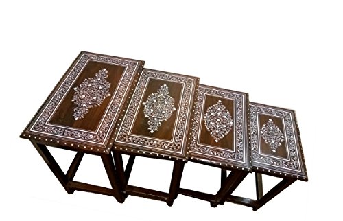 -. Title : wooden Nesting Table 4 piece indian brown and white - USA Seller