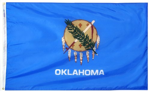 Oklahoma State Flag 3x5 ft. Nylon SolarGuard Nyl-Glo 100% Made in USA to Official State Design Specifications by Annin Flagmakers. Model 144360