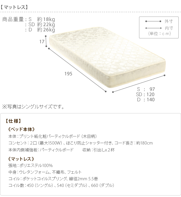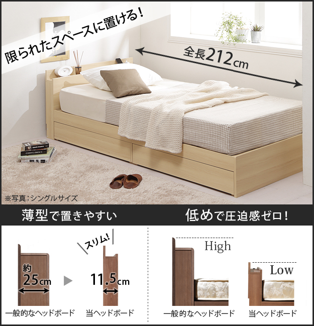 ●マットレスセット 省スペース スリムヘッドボード 2口 コンセントカバー 収納