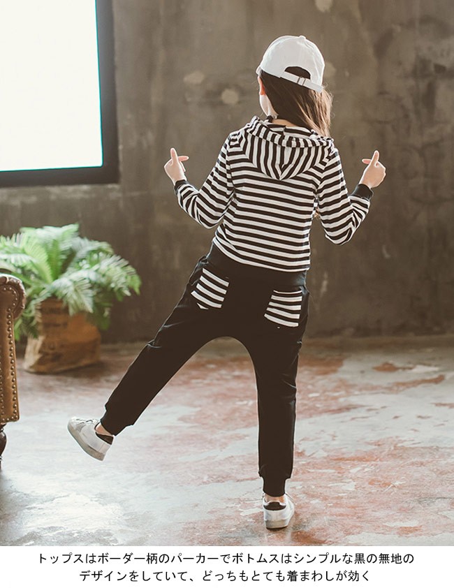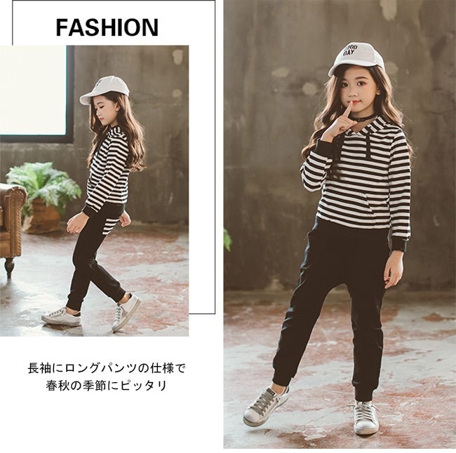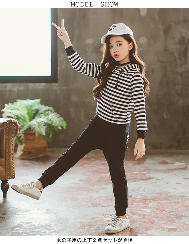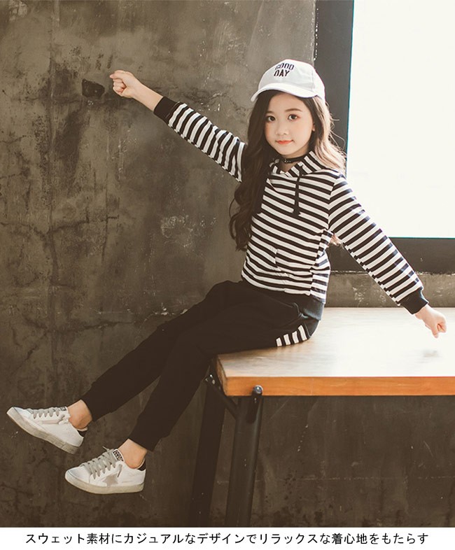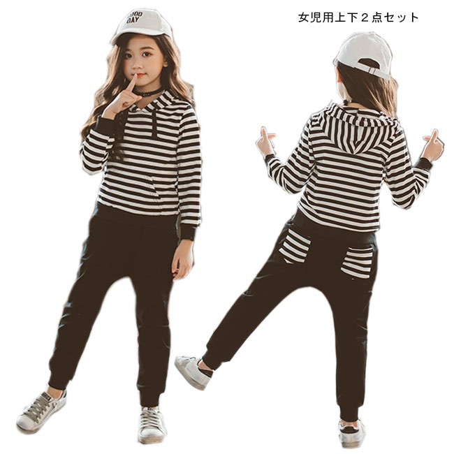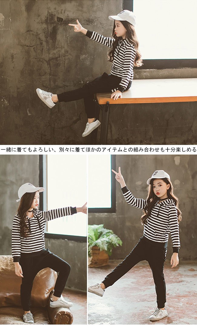 スウェットパーカー 女の子 2点セット スウェットパンツ 女児 ボーダー柄 スウェットトレーナー フード付き 子供服 パーカー セットアップ女の子用の上下2点セットが登場スウェット素材にカジュアルなデザインでリラックスな着心地をもたらす長袖にロングパンツの仕様で春秋の季節にピッタリトップスはボーダー柄のパーカーでボトムスはシンプルな黒の無地のデザインをしていて、どっちもとても着まわしが効くカラー:写真色素材 綿混紡サイズ(cm) 110 120 130 140 150 160110 トップス 着丈40 バスト67 ボトムス 総丈65 ウエスト49120 トップス 着丈43 バスト70 ボトムス 総丈69 ウエスト51130 トップス 着丈46 バスト73 ボトムス 総丈74 ウエスト53140 トップス 着丈49 バスト76 ボトムス 総丈78 ウエスト55150 トップス 着丈52 バスト79 ボトムス 総丈83 ウエスト57160 トップス 着丈55 バスト82 ボトムス 総丈87 ウエスト59ご注意:※サイズは平置きサイズです。素人採寸ですので、若干の誤差がございます、ご了承ください。