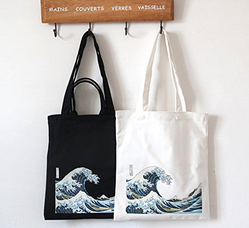 Marshel Tote Bag Japanese Traditional Prints White Black AX-JP-TB-01 Woodblock