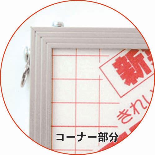 | エコイレパネとのりパネが合体。のりパネ5mm厚にエコイレパネのシンプルなアルミ枠を付ける事により発泡素材の特徴である反りなどの問題を解決します。展示の際も吊金具付きシルバーの枠が貼り付け加工した印刷物を引きたて、展示する場所を選びません。 |