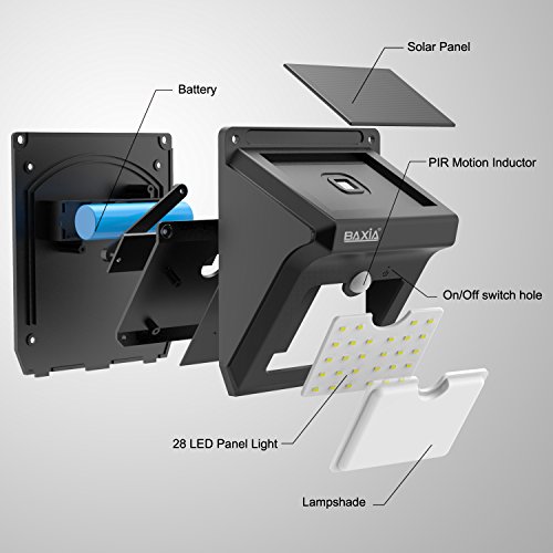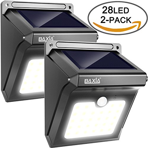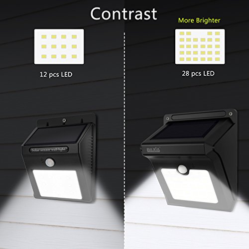 Upgraded 28 LED Solar Motion Sensor Security Wall Lights-BAXIA TECHNOLOGY Waterproof Wireless Bright LED Light for Outdoor Gate, Door, Driveway, Garden, Patio, Yard(2 Packs)