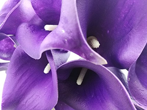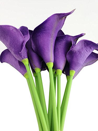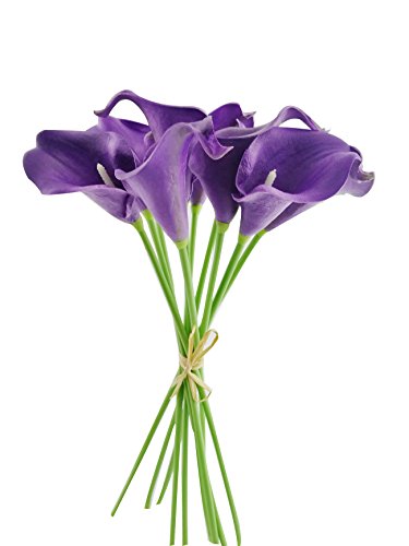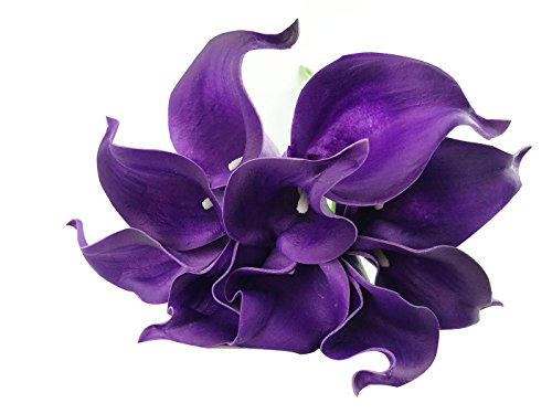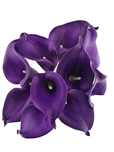 Latex Real Touch Artificial Calla Lily Flower Bouquet Wedding Party Home Bedroom Garden Restaurant Decoration - Bunch of 10 (Eggplant Purple)