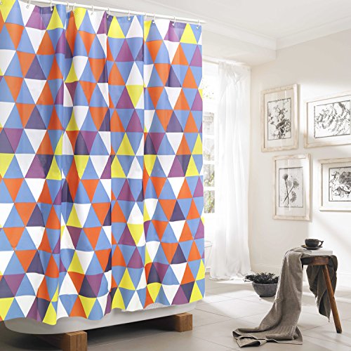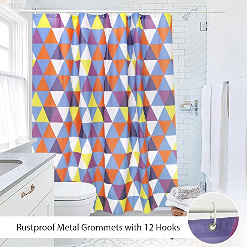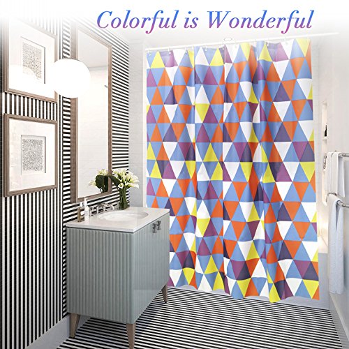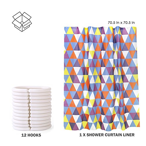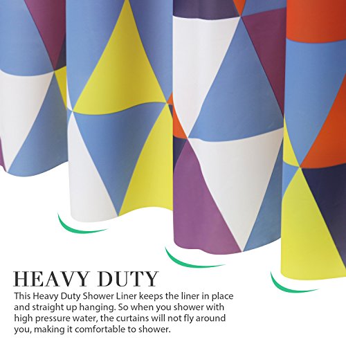 Wimaha Mildew Resistant Shower Curtain Liner, Odorless PEVA Shower Liner Waterproof Heavy Duty for Bathroom, 12 Metal Grommets and Plastic Hooks,70.5" x 70.5", Triangle Patterns, Colorful