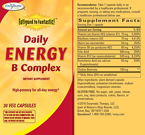 (Enzymatic)/Vitamins Dietary Supplements/Vitamins/DIRECT FROM USA/Enzymatic Fatigued to Fantastic Daily Energy B Complex High Potency for All-Day, 30 Count