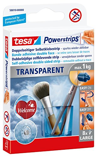 tesa Powerstrips Strips TRANSPARENT, für max. 1kg, Packung mit 8 Strips