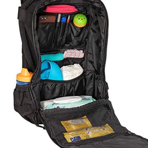 Forget everything you thought you knew about the Tactical Baby Gear Daypack. Our Daypack 3.0 completely reinvents the daypack, with new pockets, easy access utility and built-ins for tactical ease of use. Start with the new zippered main compartment, letting you access every inch of your daypack so you can access all your gear at a moment's notice. Store even more using the MOLLE webbing on the side. Then there's the redesigned carrying straps, letting you one-hand the Daypack 3.0 from the top or the side. If you're slinging all your gear on your back, you'll find more comfort than ever thanks to our contoured heavy-duty straps. Flip this bad boy around and you'll find the ultimate add-on: our tough-as-nails soft-as-a-feather changing pad, built right in to the back. Field-tested toughness. Tactical utility. And enough storage for all the gear you'll need answering the call of daddy. This is the Tactical Diaper Bag Backpack. Tech Specs: Daypack 3.0 Size: 20" H x 11" W x 8"D. Capacity: 28.84 Liters or 1760 Cubic Inches Changing Mat: 23"H x 12"W (Open)Feature