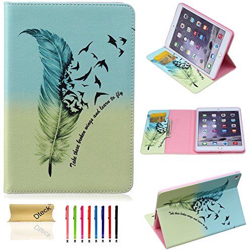 iPad Air 2 Case, Dteck(TM) Cartoon Cute Design PU Leather Flip Stand Case Cover [Cards Slots&Money Holder] Full-body Protective Smart Shell for Apple iPad Air 2/iPad 6 (03 Feather&Birds)