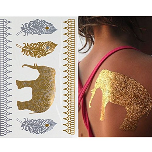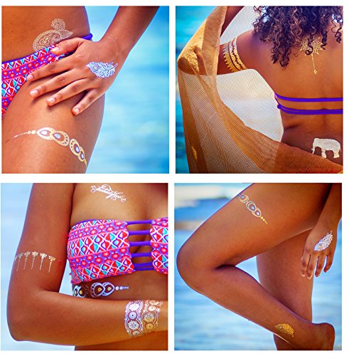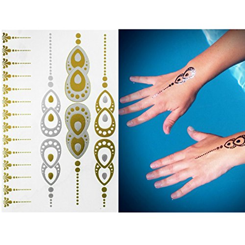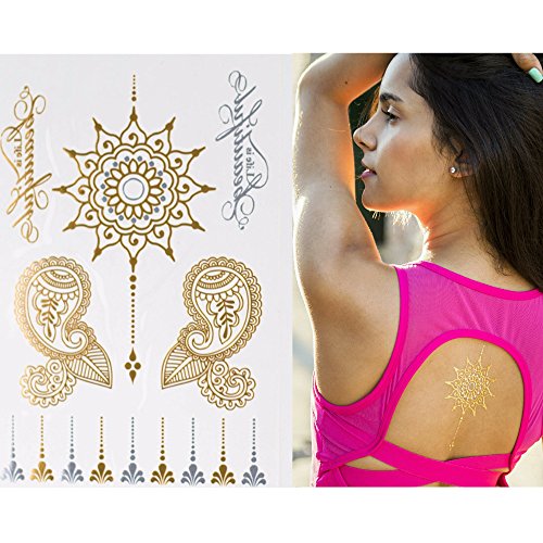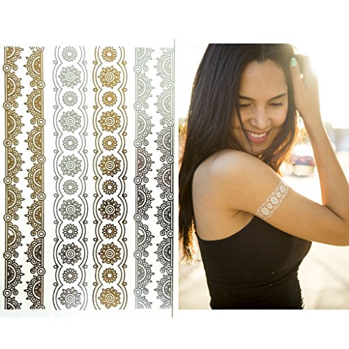 Premium Henna Metallic Tattoos - Gold and Silver - Flash Temporary Bling Tattoo