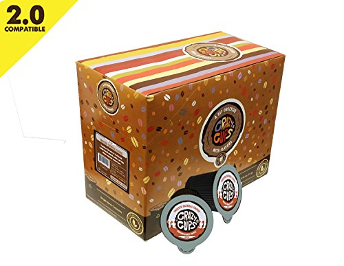 Crazy Cups Single serve cups are recyclable and contain an average of 35 percent more coffee in each cup (13g) and compatible with both The 1.0 and 2.0 Keurig K Cup Brewers