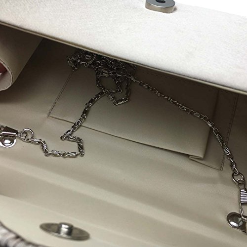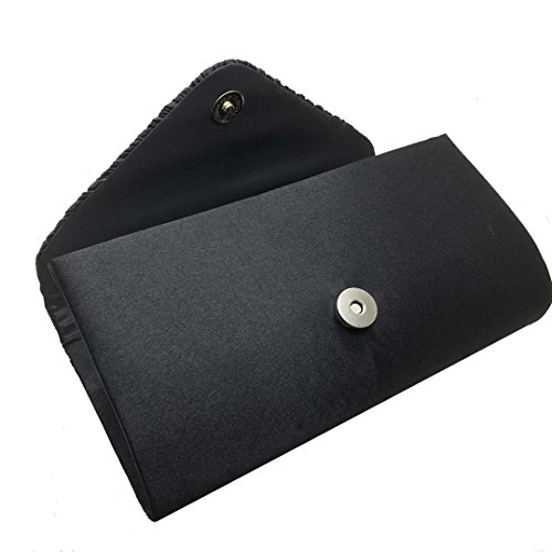 -. Feature : Material: Satin / Dimension:8.9inx3inx4.3in(L*W*H)Detachable strap:120cm/47in(A detchable strap silver chain can be use as a shoulder bag or crossbody bag) / Magnet snap closure,interior slip pocket / Eye-catching in wedding,party,prom,ball and evening events and fit for all style of clothes / The evening bag is best gifts for girlfriend,wife,lover and friends