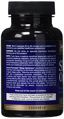 Jarrow Formulas Sleep Optimizer, Promotes Relaxation & a Healthy Sleep Cycle, 60 Caps