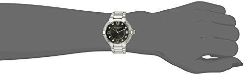 -. Feature : Stainless steel round shaped case with genuine diamond on bezel and protective krysterna crystal on front / Black hydraulically stamped inner dial with silver P.R.Inted minute track and hands / Polished finish outer dial with silver tone applied roman numerals and 8 genuine diamond markers with date window / 18mm stainless steel link bracelet with push button clasp / Water resistant to 165 feet (50 M): suitable for swimming and showering