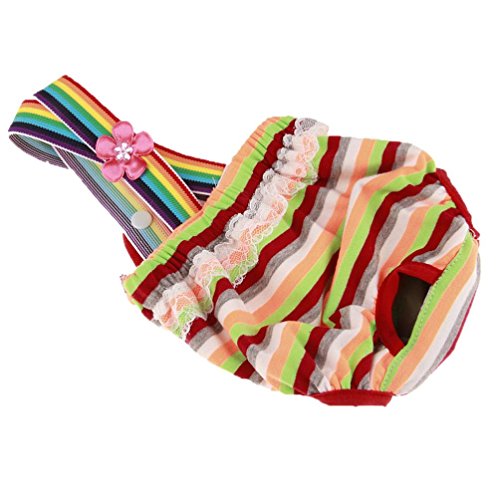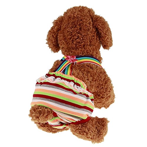 Specifications: 100% brand new and high quality,washable and reusable Name:Female Pet Dog Striped Suspender Braces Sanitary Pant Material: Cotton Color: Multicolor Feels very soft, smooth, comfortable and keep your lovely dog healthy. Multicolor striped print for adding sporty look . Easy to put on or take off with snap button fastening. Just place a sanitary pad on the bottom of trousers to reduce washing. Size:XS,S,M,L,XL 1inch=2.54cm Size Details: Size ?? XS = Waist Lenght: 29-31cm - Back Length: 22-24cm Size ?? S = Waist Lenght: 32-35cm - Back Length: 24-26cm Size ?? M = Waist Lenght: 35-38cm - Back Length: 26-30cm Size ?? L = Waist Lenght: 37-43cm - Back Length: 30-34cm Size ?? XL = Waist Lenght: 43-46cm - Back Length: 33-38cm Package including: 1PC New Dog Pants Knickers Nappy Puppy Pet Heat Menstruation Diaper Sanitary Pant 0