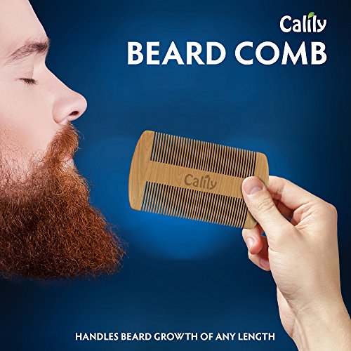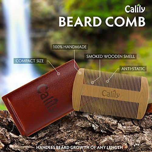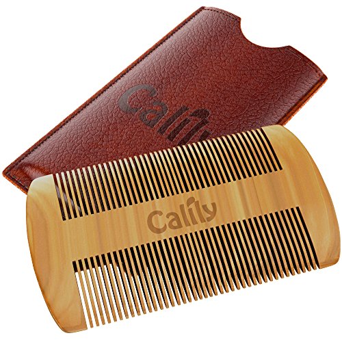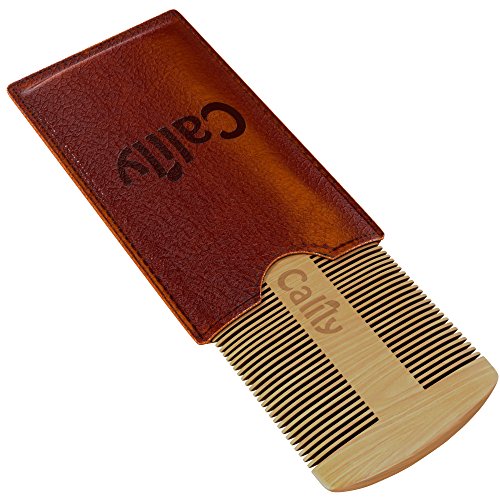 Calily Genuine Handcrafted Sandalwood Comb for Men – Pocket Size Mustache and Beard Comb with Premium Synthetic Leather Case / Ultra-Smooth Combing;...