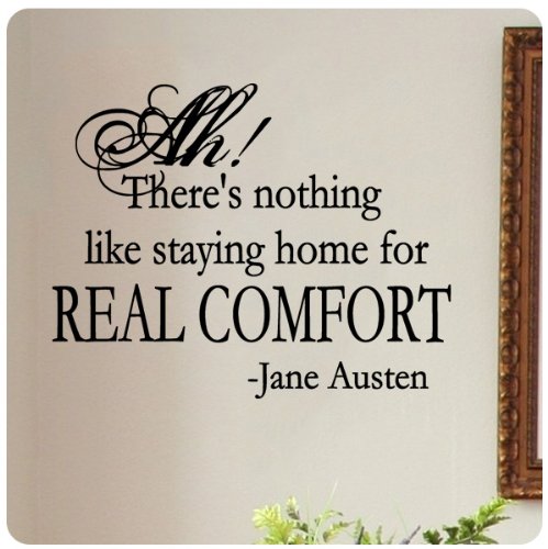 -. Binding : Tools & Home Improvement -. Brand : WallPressions -. Color : Black -. EAN : 0799599363923 -. Feature : Size: 24" x 30" / Color: Matte Black / High-Quality Die-Cut Oracal Vinyl / Removable and won't damage walls; Non Transferrable / Written and Video Instructions included -. Label : Wall Pressions -. Manufacturer : Wall Pressions -. ProductGroup : Home Improvement -. ProductTypeName : BUILDING_MATERIAL -. Publisher : Wall Pressions -. Studio : Wall Pressions -. Title : Ah! There is nothing like staying home for real comfort Jane Austen Wall Decal Sticker Art Mural Home Décor Quote -. UPC : 799599363923